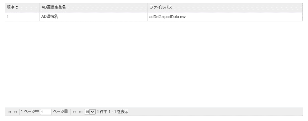 出力明細を表示します。 順序 順序を表示します。 AD連携定義名 AD連携定義名を表示します。 ファイルパス 出力ファイルパスを表示します。